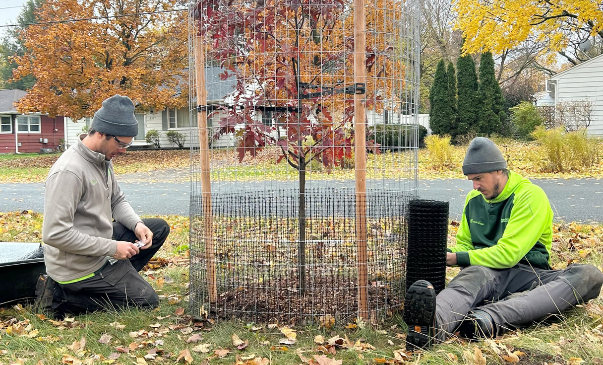 Customer sourced planting of ornamental cultivars, fruit-bearing or other non-native functional trees and shrubs is performed from an accepted proposal developed from an Arborist Evaluation or other scheduled appointment and includes: trunk-flare and root-ball reset, planting, mulch ring/watering moat, supplemental support, deer and rabbit protection and scheduled complimentary first fertilization and pruning.